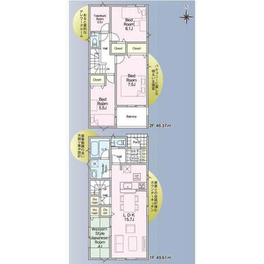 カウンターキッチン システムキッチン 床下収納 モニタ付インターホン カードキー ディンプルキー 防犯カメラ 複層ガラス 浄水器 3口以上コンロ 浴室暖房 浴室乾燥機 プロパンガス ルーフバルコニー 人感センサー付照明 火災警報器(報知機) 温水洗浄便座 トイレ2ヶ所 |